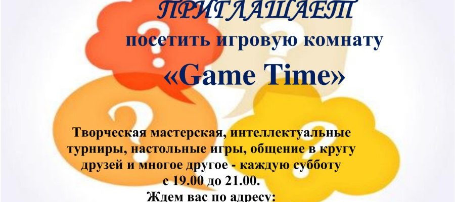 В целях создания благоприятных условий для организованной занятости детей и подростков в шестой школьный день в вечернее время с 20 ноября на базе ГУО «Центр творчества детей и молодежи г.п. Зельва» по ул. Советская, 10 начинает работать игровая комната «Game Time»
