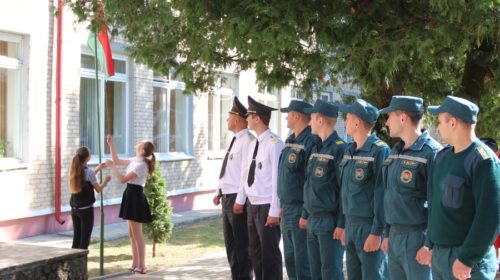 Развевающийся на ветру флаг Беларуси. Парадная форма одежды